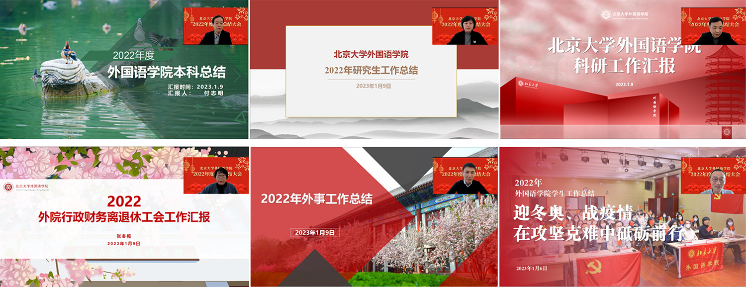 党委书记李淑静对学院过去一年的党建工作进行了全面总结。学院坚持党建统领全局,在上级党委的坚强领导下,积极学习宣传贯彻党的二十大精神和学校第十四次党代会精神,严格落实各项战略部署;各党支部充分发挥战斗堡垒作用,高质量完成各项工作任务。学院面向全体师生开展多形式、分条线、全覆盖的教育培训,结合学院业务实际解读党的二十大报告,推动党的二十大精神深入人心。学院高度重视课程思政建设,采用点面结合、层层推进的工作方法落实课程思政建设各项要求,提升课程思政建设质量水平,以北京大学课程思政示范院系建设立项为契机,启动外国语言文学类专业课程思政教学设计编写工作。学院在高端翻译人才培养和国际传播能力建设方面争当排头兵,与中央党史和文献研究院第六研究部签署共建协议,创建“高端翻译人才培养基地”,实现优势互补、资源共享。她表示,全院党员在领会践行党的二十大精神、保障师生身体健康和正常学习生活秩序、服务“双一流”建设与国家发展战略等方面充分发挥党员先锋模范作用,自觉行使好党和人民赋予的权力、完成好党和人民交给的任务。愿新的一年,外院全体党员矢志不渝、笃行不怠,在充满光荣和梦想的远征中奋力奔跑。