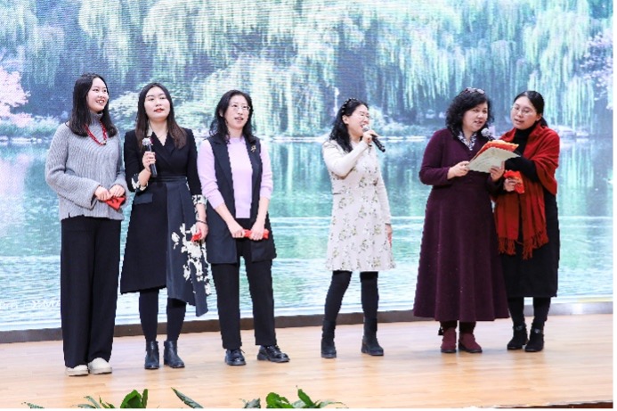 游戏环节的飞花令同样精彩纷呈,“花”字成为本次飞花令的字眼。老师们纷纷起身吟诵诗词,连小朋友与外籍教师也同样展现出不俗的诗词功底,少长咸集,中外共聚,同赏中华诗词之美,寄托着“春城无处不飞花”的美好希冀。四轮抽奖环节激动人心,在万众瞩目中,各项大奖也纷纷揭晓,获奖的老师们洋溢着幸福的笑容。最后,大学英语教师们带来了经典英文歌曲串烧,一首首经典串起时代记忆,全场观众沉浸其中,跟着旋律齐声哼唱,联欢会在这热烈欢快的氛围中圆满落下帷幕。