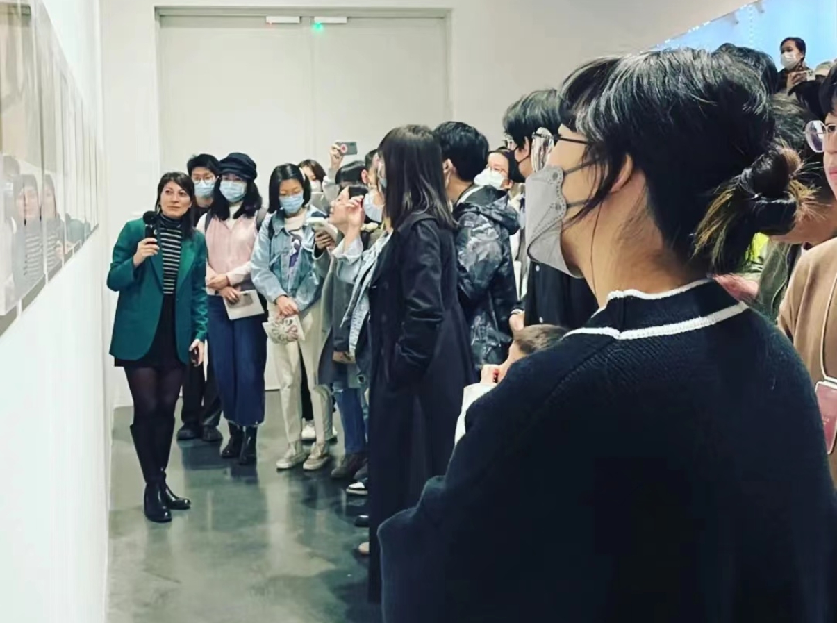 带领学生参观《意大利当代艺术丝路行》主题展览(左一)