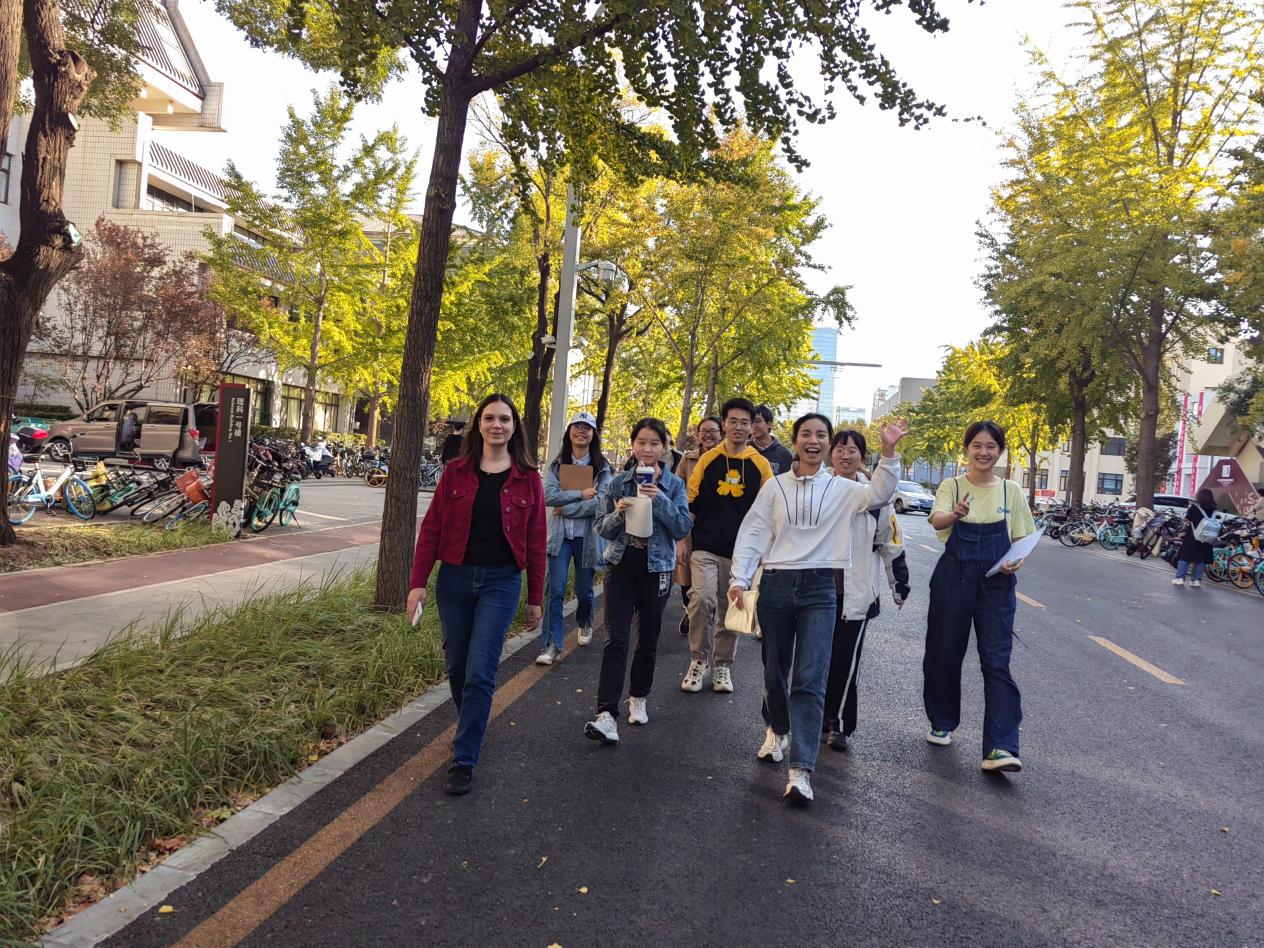 安娜带领22级葡萄牙语本科生班去户外写作,左一为安娜