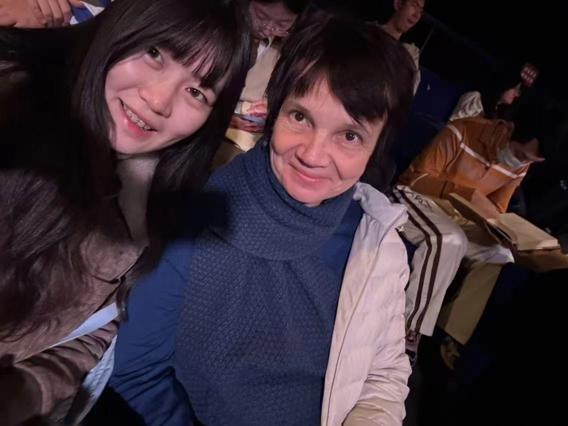 马尔卡索娃(右一)与学生一起观赏戏剧