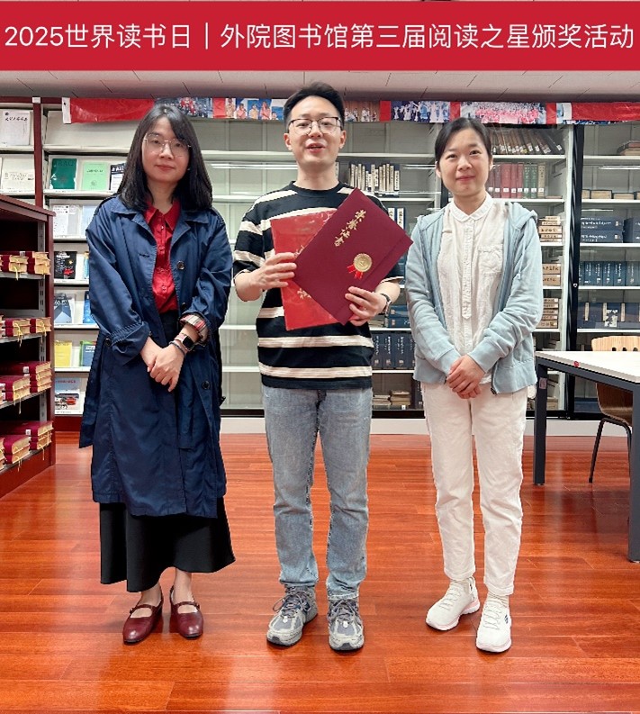 颁奖仪式上,分馆馆长张晓雁向获奖者颁发证书与纪念奖品,并阐释活动初衷:“阅读之星评选不仅是对借阅数据的肯定,更是希望通过榜样引领,让‘多读书、读好书’成为外院师生的日常习惯。” 她特别提到,外院分馆藏有大量多语种原版著作和学术文献,此次获奖的范晔老师长期借阅西班牙语经典文学,吴振宇、吴天鹏同学则在专业书籍与通识读物中保持高频阅读,“他们的阅读轨迹正是外语学科‘专业+人文’培养理念的生动注脚。”