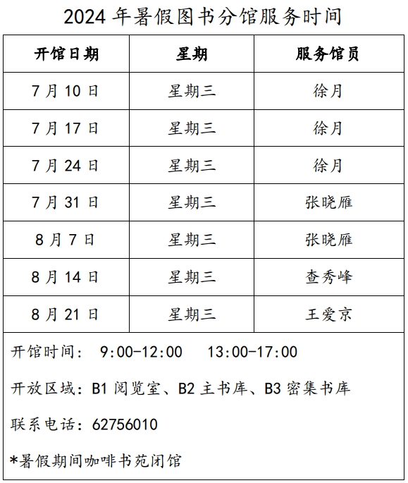 2024年暑假开云体育带值班表