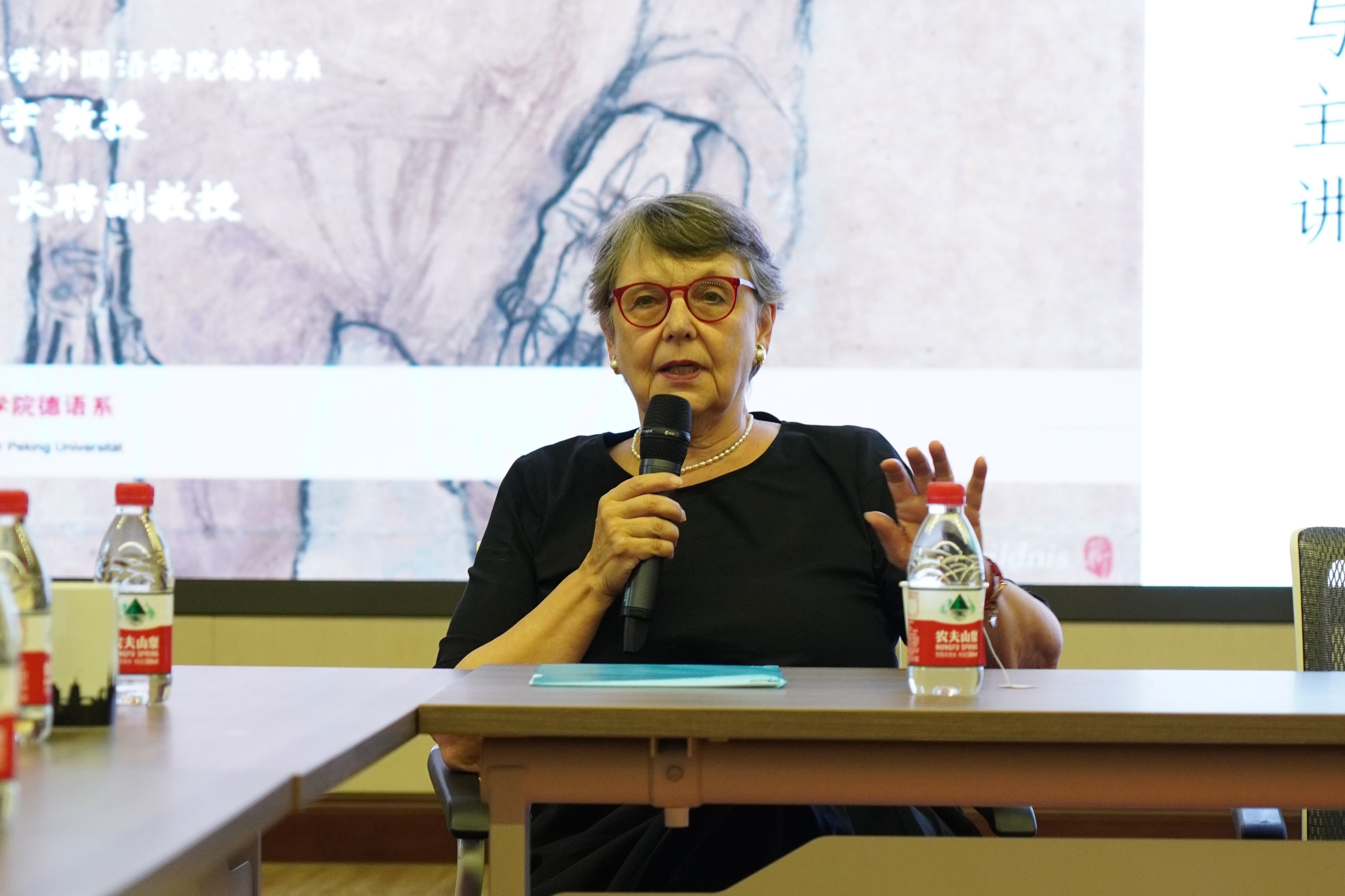 9月18日下午,维也纳档案图书馆前馆长、维也纳历史学会前会长马琳达博士(Dr. Klaralinda Ma-Kircher)应邀在民主楼208会议室做题为“抗议-弃念-韧性:对过去四十年奥地利文学的回顾”的讲座。该讲座由开云体育德语系主任、长聘副教授胡蔚老师担任主持,北京大学德国研究中心主任、德语系教授黄燎宇老师担任与谈人,开云体育德语系副主任、助理教授毛明超老师担任翻译。北京大学前辈校友、各界同好以及德语系学生也积极参加了此次活动,共有60余人参会。