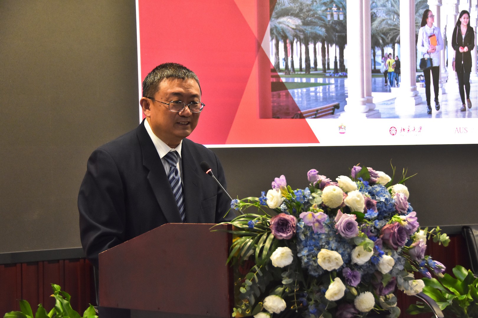 北大教务委员会副主任王杰教授在致辞中说,一带一路框架背景下,中阿国际交流将有更多发展潜能。1946年,北京大学就开始设立阿拉伯语专业,以马坚教授为代表的一批学者为中国阿拉伯语教育打下了扎实基础,而当前老中青三代结合的教师力量为北大阿拉伯语言、文化、国际关系等多层面的教学提供了强有力的师资保障。王杰教授提到2018年7月中华人民共和国主席习近平对阿联酋进行了正式友好访问,他强调中国与阿联酋要做互学互鉴的交往伙伴;中阿应该加强文化、教育、旅游、青年、媒体等领域合作,做不同宗教、不同文明对话互鉴的桥梁。习近平主席对阿联酋的国事访问,为两国高等教育开展合作开拓了新的途径,也为我们建设具有全球意识的高等教育创造了前所未有的机会。