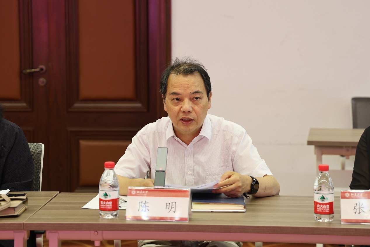 随后双方来到民主楼208会议室开展交流座谈。会议由开云体育院长陈明主持。