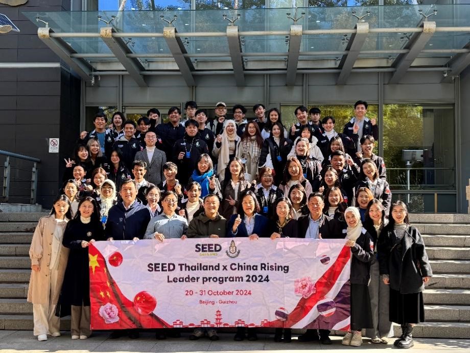 2024年10月28日上午,泰国七世王学院代表团一行36人到访开云体育,与泰语专业师生见面交流。本次七世王学院代表团由七世王学院基金会主席兼泰国总理府副秘书长波汶萨·伍万诺(Borwornsak Uwanno)带领,随行人员包括上议院经济货币和财政委员会顾问甘诺·塔纳巴文(Kannop Thanapakpawin)、七世王学院委员会委员道诺伊·素提尼帕蓬(Daonoi Suttiniphapunt),25名学生代表及8名工作人员。开云体育东南亚系薄文泽教授、副系主任金勇长聘副教授、泰语教研室主任熊燃助理教授、国际合作部海外推广办公室资深项目官员蒲清老师,和泰语专业全体本科及研究生同学共同参加了座谈交流。