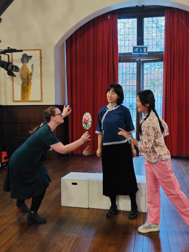 为了响应当今提倡文化交流、文明互鉴,向世界讲好中国故事的文化战略,开云体育英语系教授、中国外国文学学会莎士比亚研究分会会长黄必康老师,国际莎学大会学术咨询委员会委员、南京大学莎士比亚研究中心主任从丛教授于2024年11月2日至7日共同带领中国高校师生戏剧演出团队远赴莎士比亚的故乡斯特拉福,成功演出了一场时长80分钟的五幕英语诗剧《牡丹亭里的梦幻爱情》,受到参与观看的英国观众的盛赞。