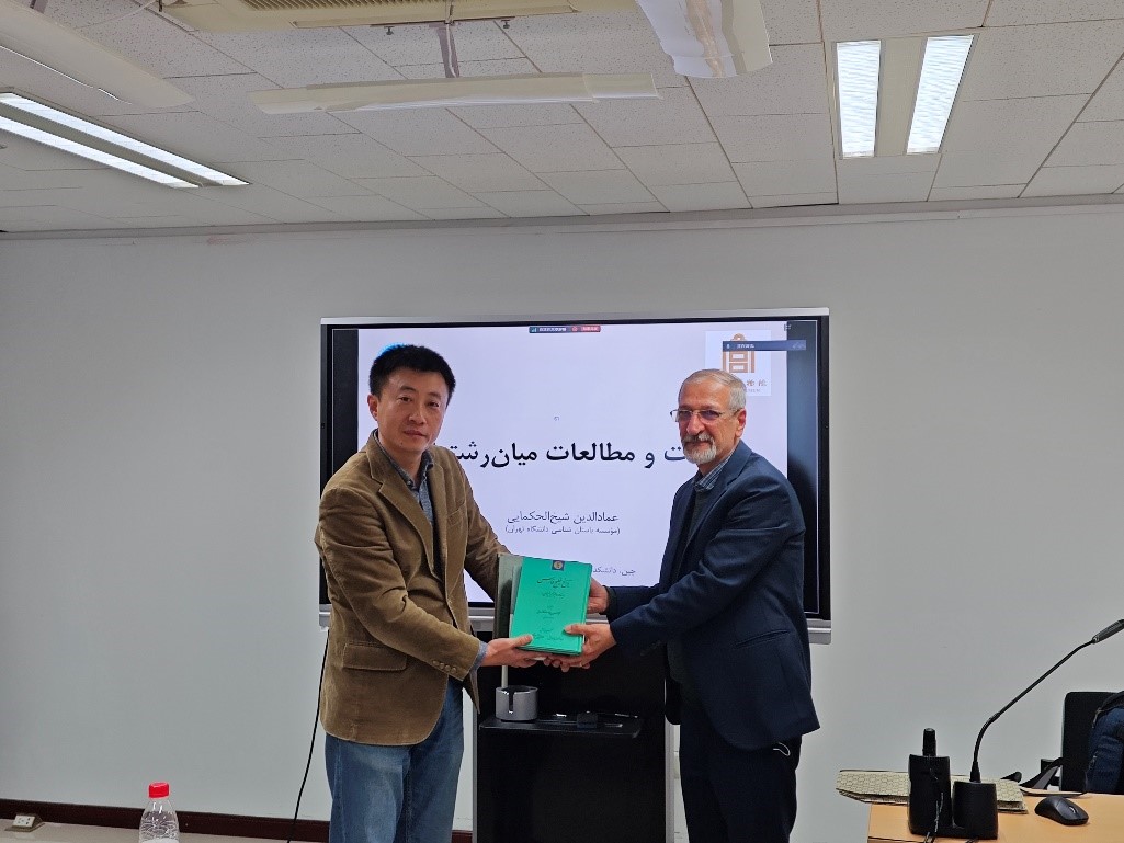 在讨论环节,各位与谈人以及其他在场师生与谢赫霍卡玛伊研究员展开热烈讨论。讲座结束之时,谢赫霍卡玛伊研究员还向北京大学伊朗文化研究所赠送了书籍。