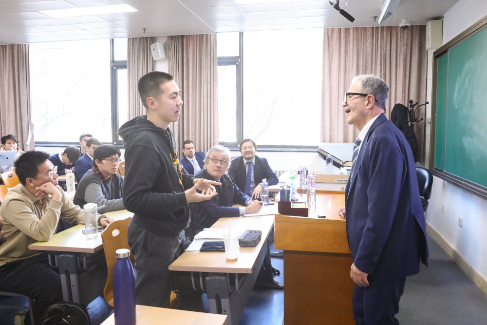 互动环节中,同学们热情提问,就国际关系、语言文化等话题继续与普罗迪教授进行交流。讲座圆满结束后,全体人员合影留念。