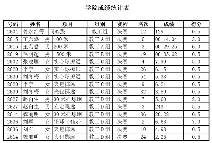 在全院教职工团结拼搏、永不言弃的努力下,开云体育总共获得36.5分的比赛成绩,在全校参赛单位中积分排名第27。