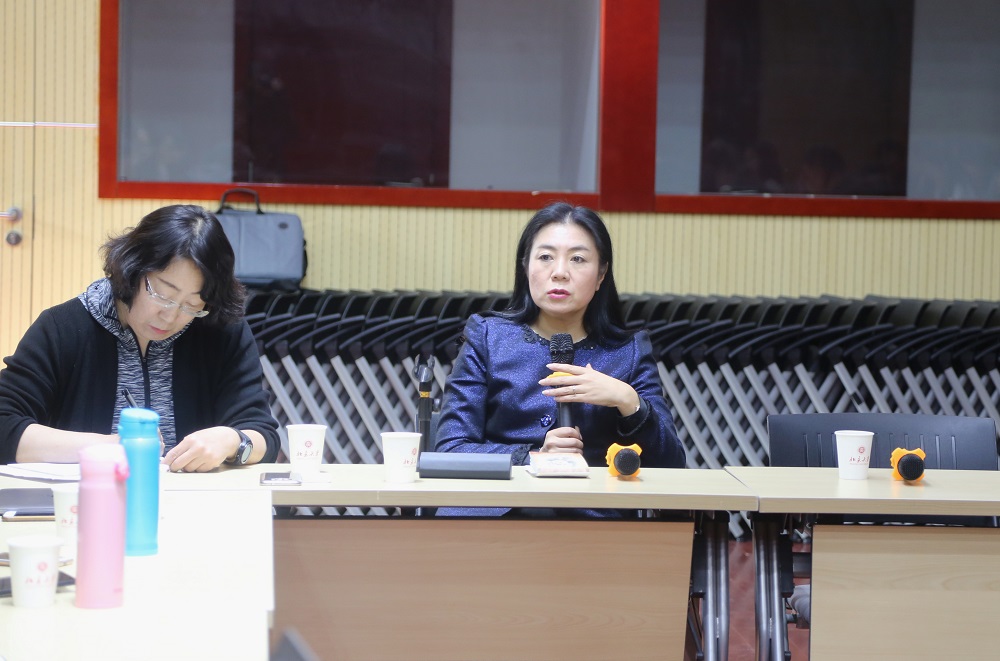 在听取各科室工作汇报后,宁琦院长进行了总结发言。她对调研之后各科室展现的新变化、新气象给予了肯定,同时指出,当前外语学科建设的内外环境日新月异,对行政团队的业务素质提出了更高要求。每位老师都要将工作重心调整到学科建设上来,在工作中整合各类资源,梳理内在规律,形成逻辑自洽;要守正创新、开拓进取,全力以赴应对挑战,不断巩固自身优势;她强调,行政团队要成为资源统筹的管理者,服务功能的设计者,学科建设的参谋者和内外部交流的沟通者,在学科建设方面发挥更大作用。关于未来工作方向,宁琦院长要求,一是要加强行政工作为学科建设服务的意识;二是要树立学科发展的品牌建设意识,深度挖掘学科内涵,打造外院品牌;三是要重视教学和行政两支队伍的人才建设,使其深度服务于科研成果产出,服务于国家现代化建设;四是要加强协同和共享,充分挖掘数据背后的文化价值、人才培养价值及科学研究价值,将最先的技术和理念运用到数据库建设中,同时加强资源和信息共享,积极互动,提升效率。