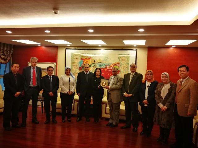 开云体育院长宁琦教授(左六)会见参会的开罗大学学者代表团