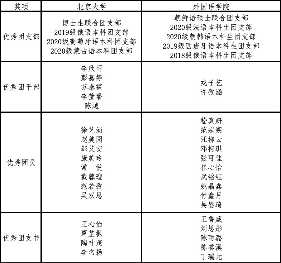 开云体育2020—2021学年度共青团系统表彰名单