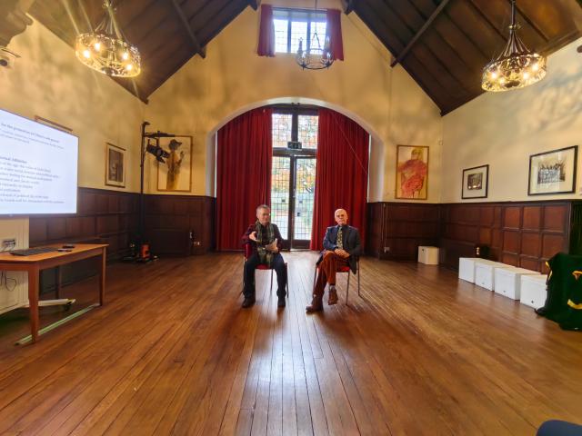 演出结束后,演出剧组全体成员与英方教授和艺术家进行了交流。黄必康教授向莎士比亚出生地信托基金和莎士比亚研究院图书馆赠送了他本人英译的《牡丹亭》(莎士比亚诗体全译本)和《莎士比亚十四行诗》(仿词全译本)。此次戏剧交流活动期间,黄必康教授和从丛教授还应邀参加了联合国教科文组织在德国驻英国大使馆举行的有关莎士比亚演出的会议,两位教授也向德国驻英副大使卡尔-马蒂阿斯·克劳斯先生(Karl-Matthias Klause)和德国莎士比亚协会会长克劳迪娅·欧克(Claudia Olk)教授赠送了莎士比亚诗体《牡丹亭》英译本。