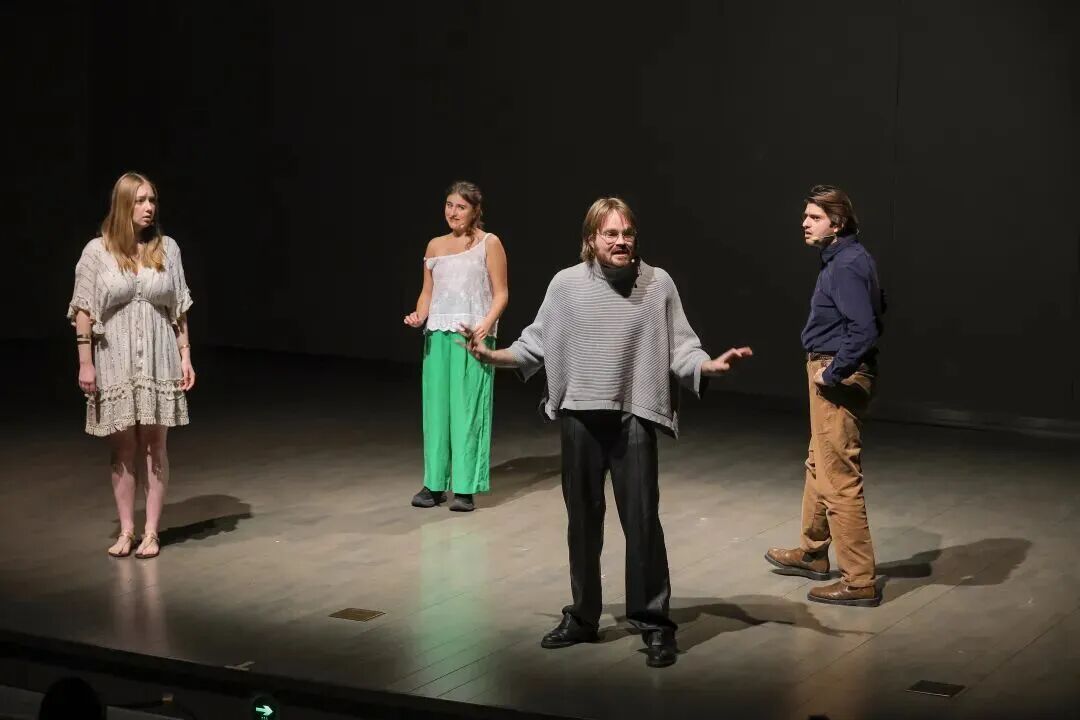 研讨会上,来自莎士比亚故乡的剧组演员代表Liberty Myers也做了简短发言,他代表同学们感谢北大燕京学堂和开云体育的邀请,分享了剧组在排演《牡丹亭》过程中的感受和演出经验。三位燕京学堂的同学——导演Luca Bustani Wood、主演Isabella Concetta Gualano与艺术总监Kristina Ming-xue Gilje Chiu,代表《仲夏夜之梦》剧组发言。他们向那些在幕后默默付出、未能亲临现场的伙伴们表达了感谢,从剧本打磨、舞台搭建到服装道具筹备,每一份支持都化作了演出顺利呈现的保障。值得一提的是,参与本次演出的同学们并无一人是专业演员,也从未接受过系统的戏剧表演培训。但对莎士比亚经典的热爱与对舞台的憧憬,让他们跨越了专业的界限:从最初对台词节奏的生涩拿捏,到肢体表达的反复磨合,再到对角色情感的深度揣摩,大家利用课余时间全心投入、相互鼓劲,用纯粹的热情与不懈的坚持,将这部奇幻喜剧的魅力淋漓尽致地展现了出来。这份“非专业”的坚守,更让这场演出多了一份纯粹的动人力量。(以上引文出自燕京学堂有关报道,谨此致谢)。两个剧组同学们讨论热烈,他们对戏剧艺术的热爱和探索精神都受到了与会者的一致赞扬。