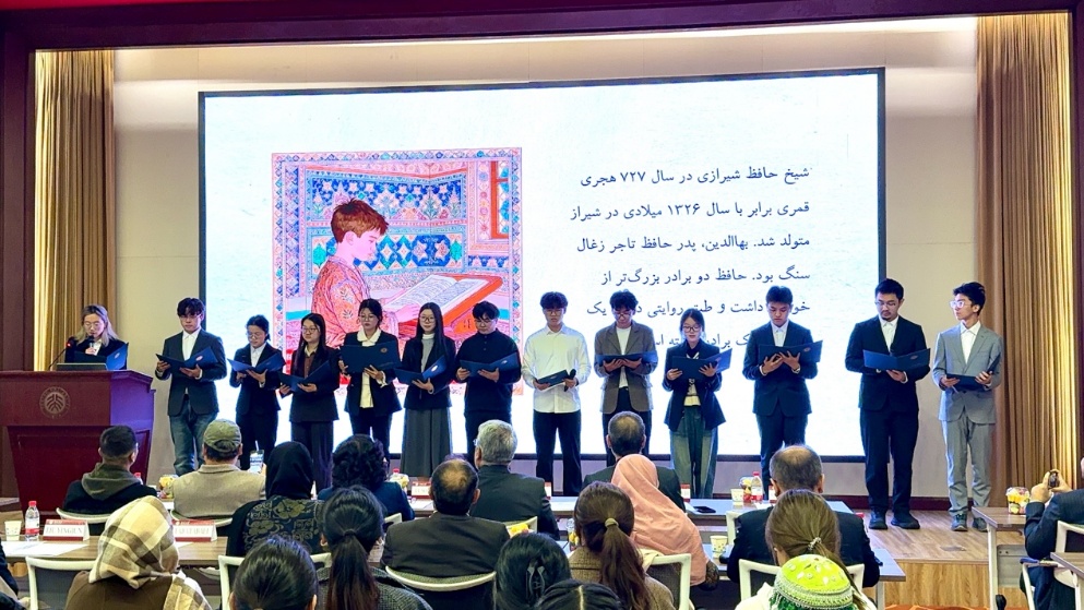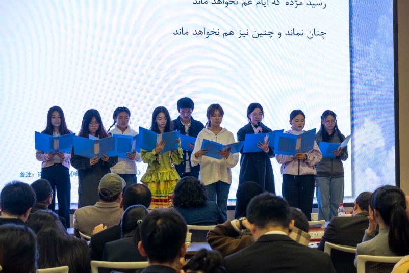 在场各高校波斯语专业的学生代表也为座谈会送上了精彩纷呈的节目,展现了各校波斯语专业的风采。北京大学波斯语专业的学生梳理了哈菲兹的生平,并通过朗诵的形式展现了哈菲兹的诗歌之优美、意蕴之丰富。其他高校的学生们也通过朗诵、演唱、舞蹈及话剧等形式表达了对诗人哈菲兹的缅怀之情。