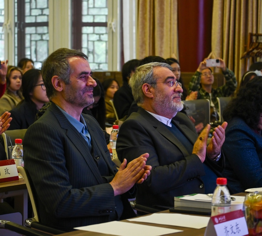 伊朗驻华大使法兹里(右)、文化参赞伊朗扎德(左)在座谈会现场